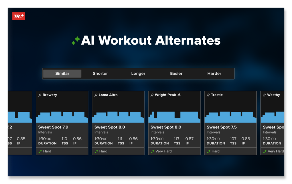 AI Workouts are selected the same way workouts inside TrainerRoad plans are selected. You are not sacrificing structure, effectiveness, or progression by using them.