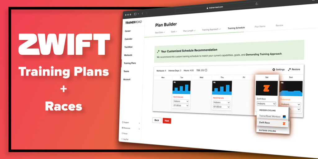 TrainerRoad’s Plan Builder allows athlete’s a personalized cycling plan around your schedule, experience, and goals—whether you’re racing, improving FTP, or just trying to ride more consistently. Your plan adapts with you, factoring in life events, missed workouts, and unstructured rides so you always stay on track with training that fits your life.