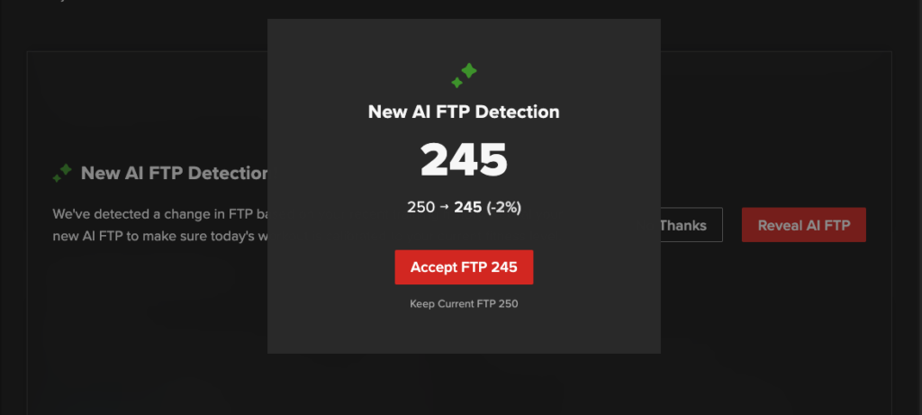 This FTP adjustment ensures your workouts stay aligned with your current progression so you can keep building fitness without disruption.