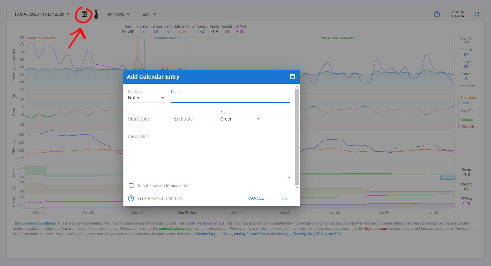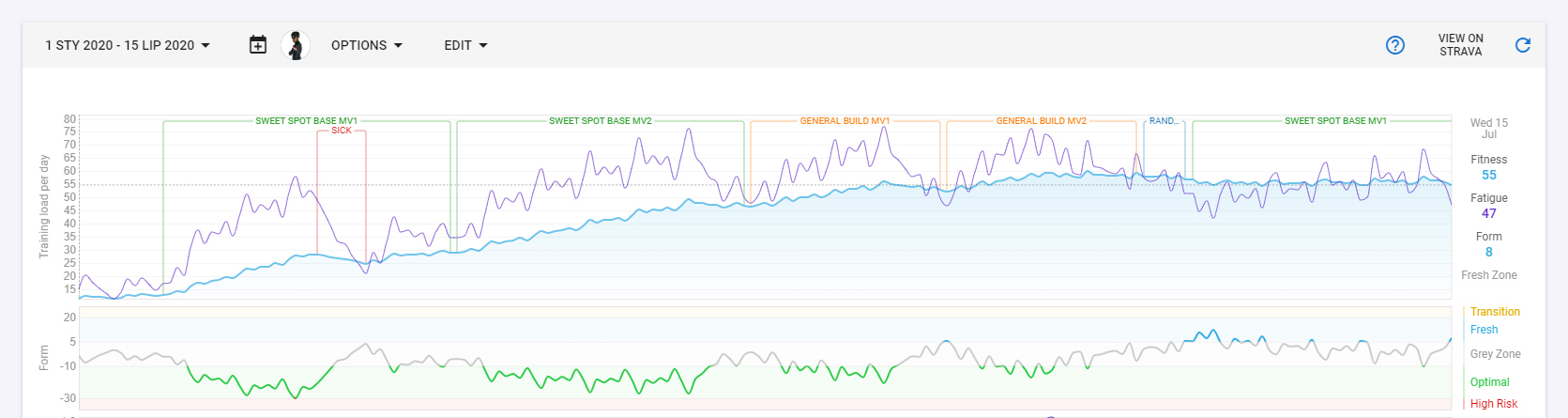It would be really nice to be able to easily see which phase of the training plan you are in. I’m thinking that if the TSS chart at the top of the calendar could have an option to highlight each block of a training plan. For example weeks 23-27 could have a semi-transparent block over them saying “sustained power build 1” etc.