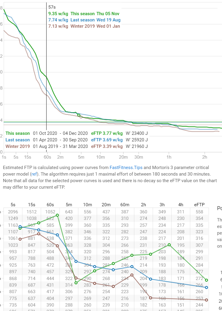 Different eating and cycling indoor and outdoor 4 to 5 days a week. Now weight is stable, maybe my 1 min power is a left over from caring 30kg fat for 10 years