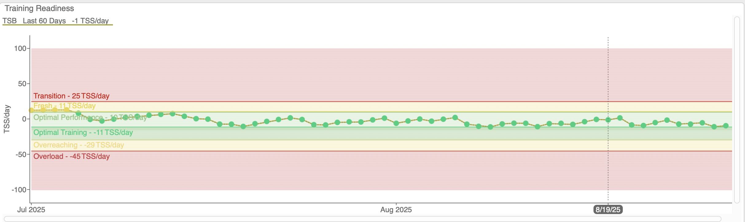I’ve also never been in the TSS/day optimized training zone but I’ve been edging down towards there. This chart though is probably designed for 20 year olds.
