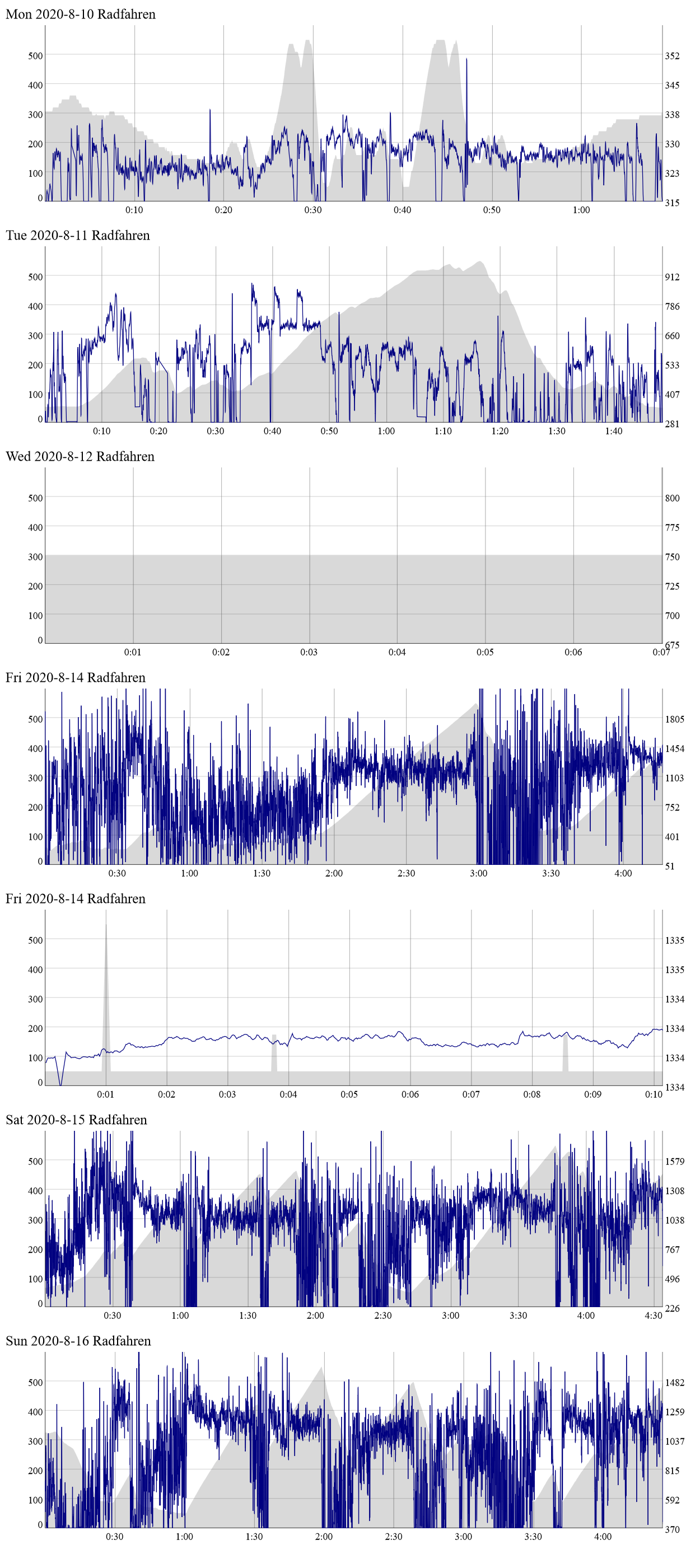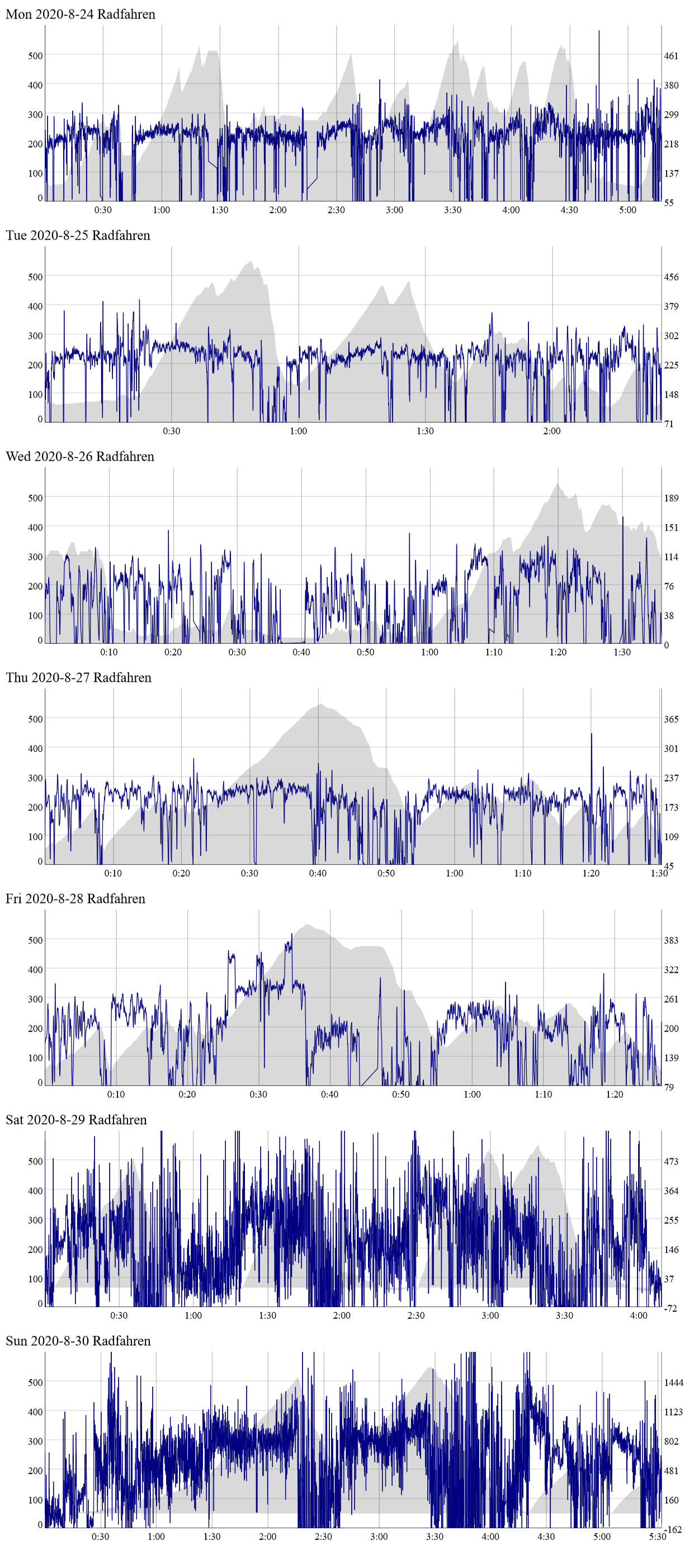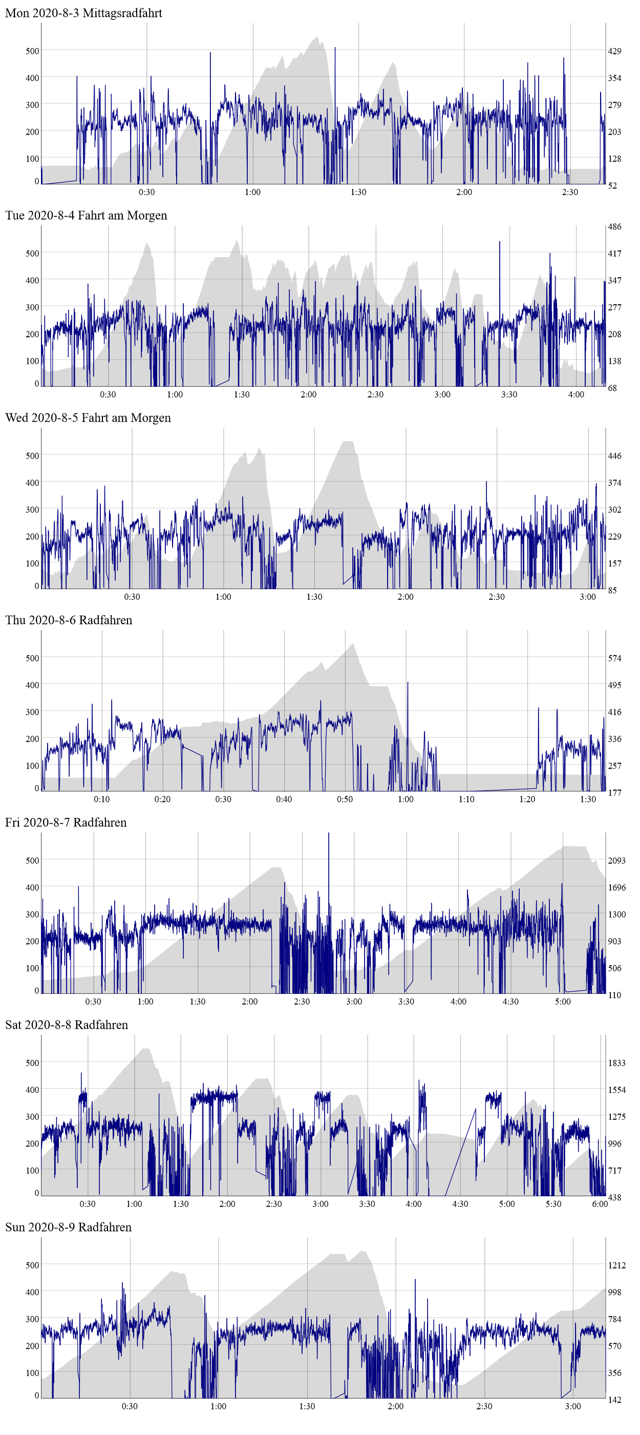 The time trial on Saturday took him 1h. With an average power output of 368W (~ 5.6W/kg). However, we don’t know if he went all out or if he held back. Looks a little bit like he went for the mountain points only, the flat section was signifcantly less intense (361 vs 393W).