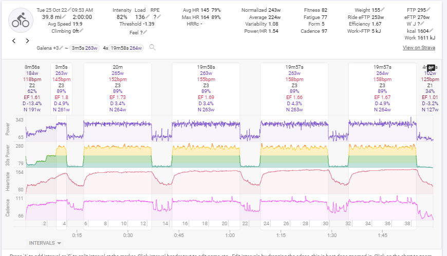 I did 4hrs at 195W two days after my 293 ramp, but two months later only 160ish watts at virtual Kona. And ftp dropped back to 260, so I need to think about sustainability.