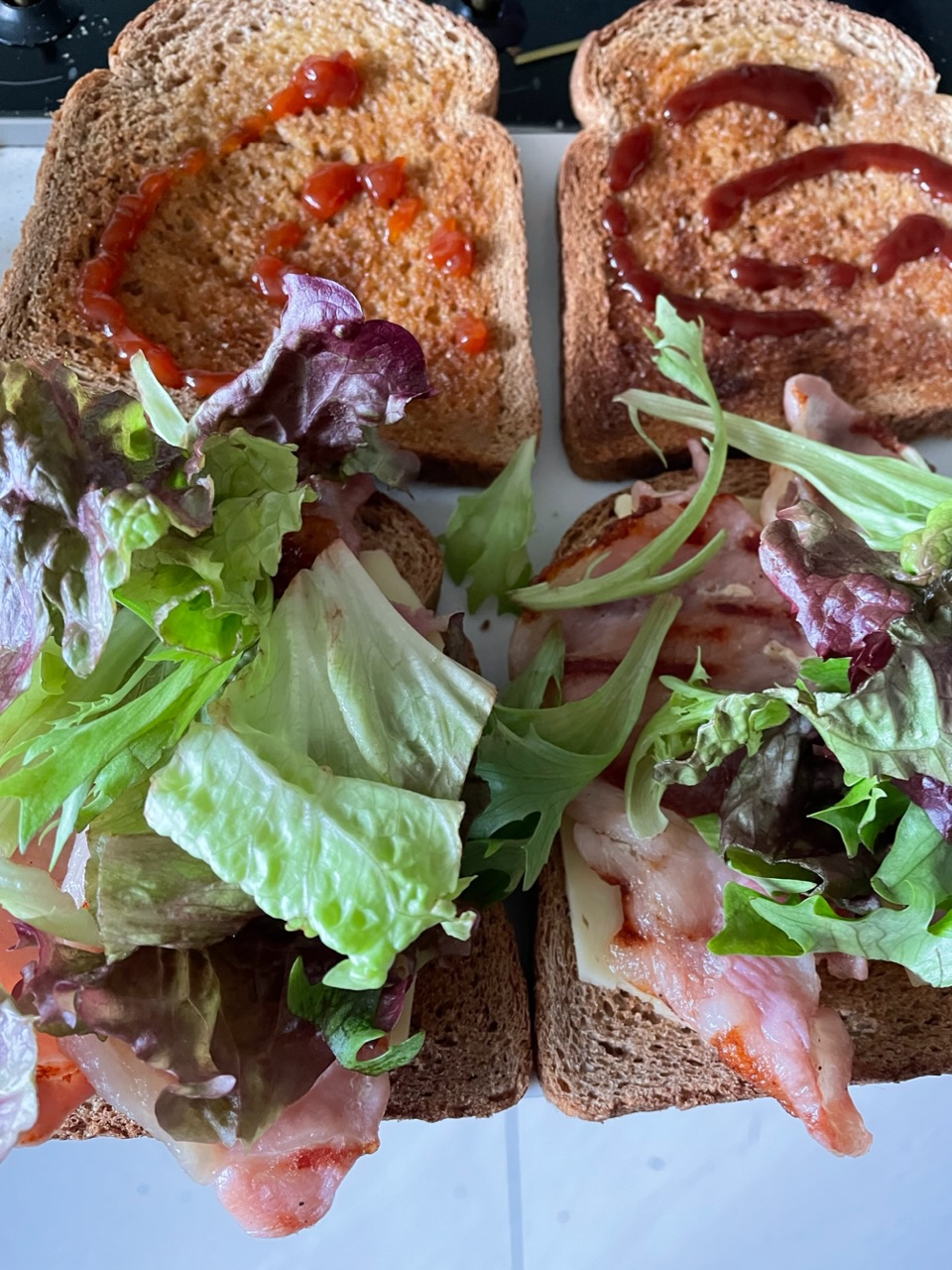 I don’t often eat salads for lunch but there was an avocado that needed eating and a little bit of pea shoots left in the container that wouldn’t last another day…