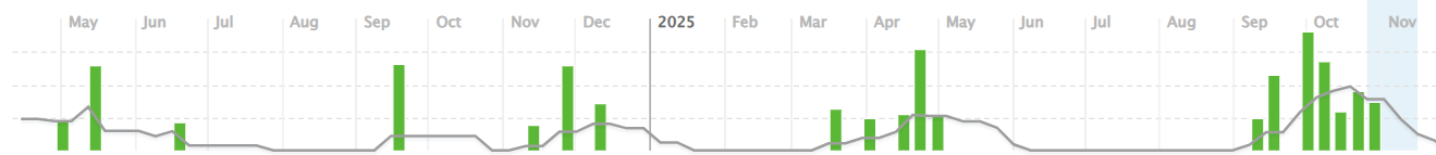 I’m seeing a lot of weeks with 30-90 minutes of running and no cycling, and the most you’ve ridden since April of 2024 is three hours during the first week of October.