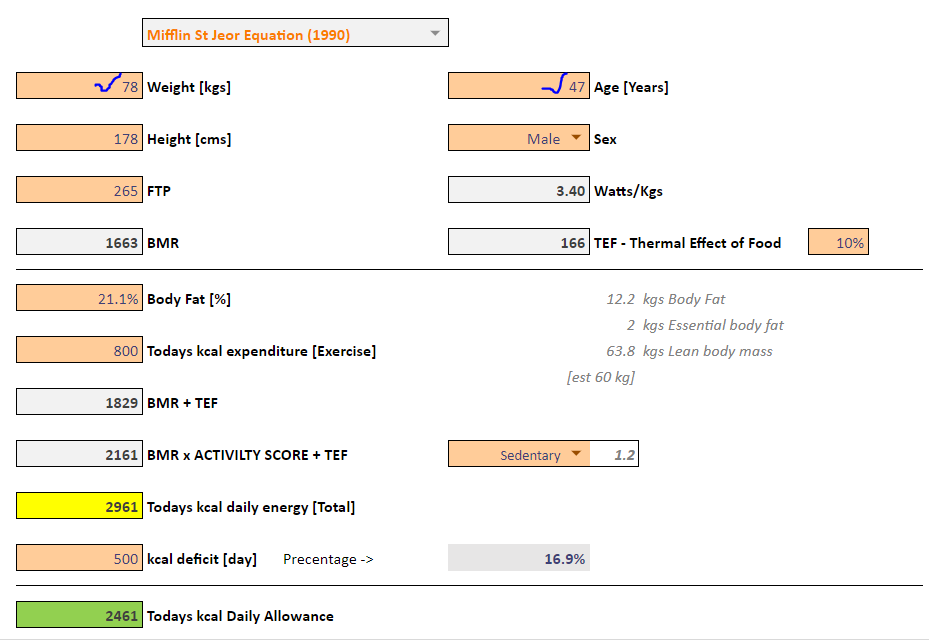I added my “BMR, W/kg & Calorie Calculator” to the spreadsheet if anyone wants to play.