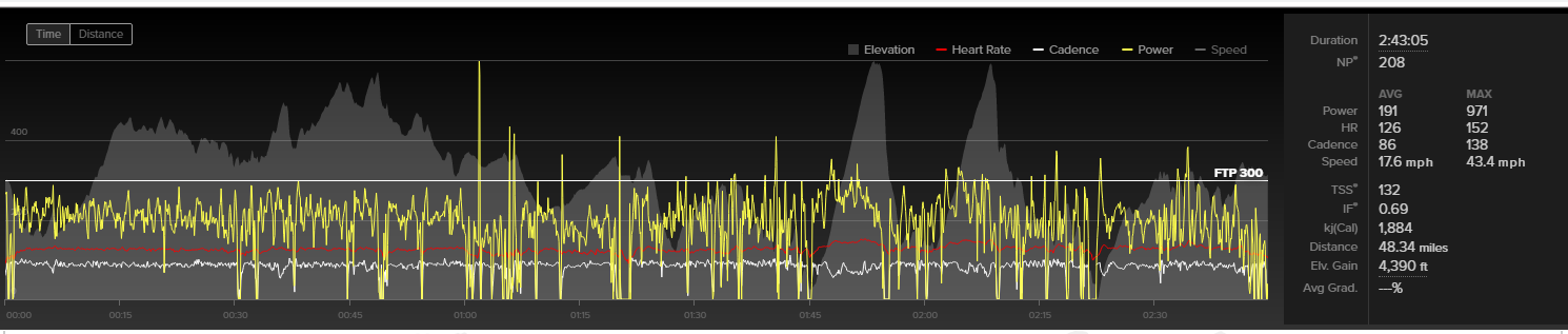 So did this ride: Mostly endurance zone, with a few climbs done around sweet spot