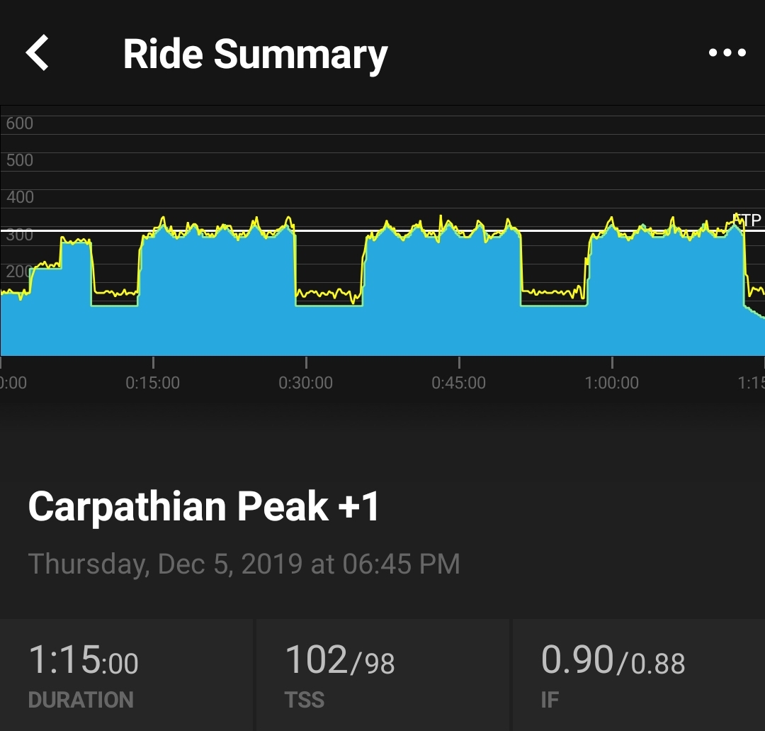 Carpathian Peak +1 - slight deviation from plan, hoping to get 6 hours in plus gym over next 3 days before business trip/xmas party. Might not make it till tuesday!