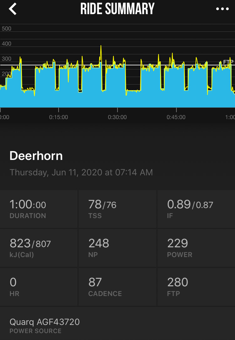Woke up this morning like “uhh this looks hard” then I started it and I felt really good throughout it. I was surprised I didn’t flag during the 99% interval (middle) and thought my power would be all over the show by the end of the third interval but here we are. My heart rate is so high - I look at @chad chilled ramp test earlier in the week and my heart appears to be bouncing around my chest!