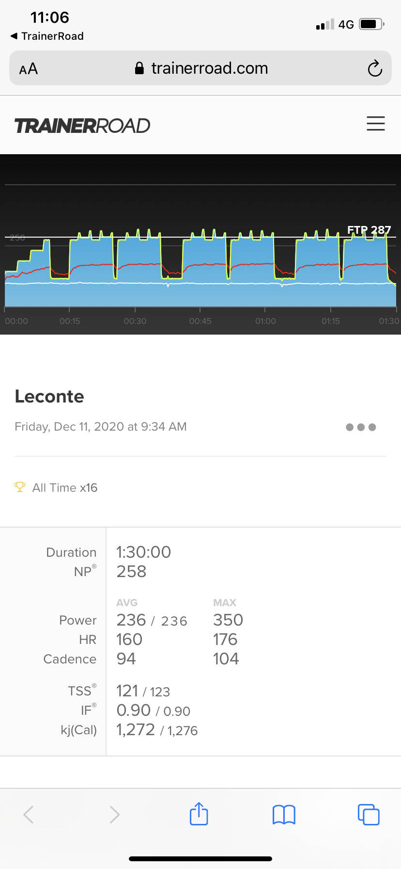 wasn’t looking forward to this, but ate well today and it wasn’t actually that bad at all! Maybe due a little FTP bump! One more week of a mixed up SSB, then a easy week, then ramp test time again.