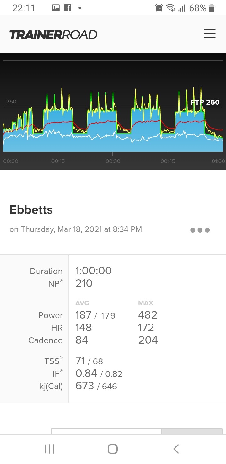 I had that in my calendar last weekend and was going to do that outside too if no one turned up at our first club run of the year. One of the strongest riders in our club did turn up and into a strong headwind we ended up doing something similar but without the recoveries. On the back of a hard Saturday ride I got to 2h and the legs went pop, unfortunately I still had 2h to go but fortunately with that wind mostly behind me
