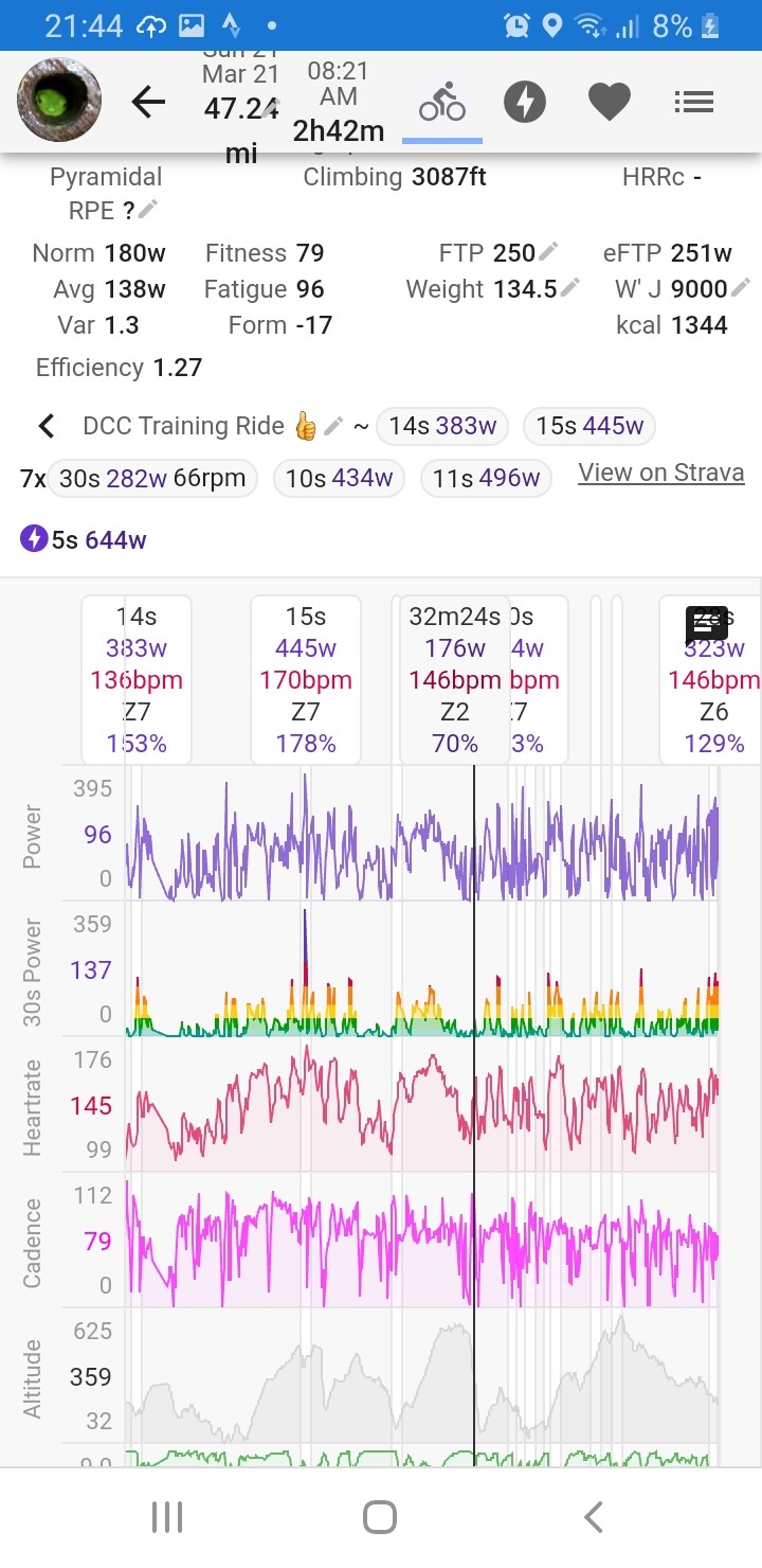 Ride turned out to be a bit of a kitchen sink with no real purpose but I was pleased with the overall speed and some of my times up the climbs.
